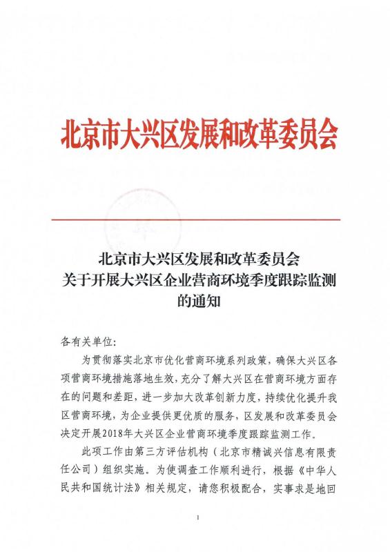 关于开展大兴区企业营商环境季度跟踪监测的通知