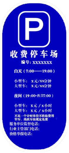 二、明码标价内容。明码标价内容包含收费时段、收费标准(包括计价单位、不足一个计时单位不收取费用、军车残疾车按规定免费等内容)、服务单位监督电话、行业主管部门电话和价格举报电话、经营单位名称、停车场范围(位置)、编号、车位总数等。经营者参照附件样式自行制作明码标价牌,实行政府定价的收费停车场明码标价牌编号按《北京市机动车停车条例》规定执行,新设置的实行市场调节价的收费停车场明码标价牌编号为北京市公共停车场经营备案证的备案号。
